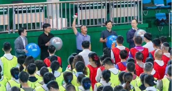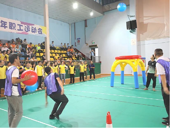 开幕式阶段,公司领导将手持象征“江水”的蓝色气球与象征“大坝”的银色气球,轻轻抛向职工队伍,将信任与期望稳稳交予全体职工,气球在队伍间来回传动,大家抬手托举、笑意盈盈,笑声与欢呼声在场馆里此起彼伏。