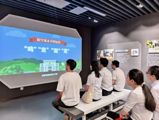 活动期间,团员青年们沉浸式观看了“鸣、走、藏、消”四大展区的“实训”视频,深入了解防空警报试鸣、人员紧急疏散掩蔽、重要经济目标防护和消除空袭后果等防空袭实战化演练的全过程。视频中紧张逼真的场景模拟,让团员青年们仿佛身临其境,深刻体会到在紧急情况下迅速反应、正确行动的重要性。在三防演示厅中,通过模拟真实的场景,团员青年们学习了在紧急情况下如何正确地进行自救保护进行一系列的自救演练。