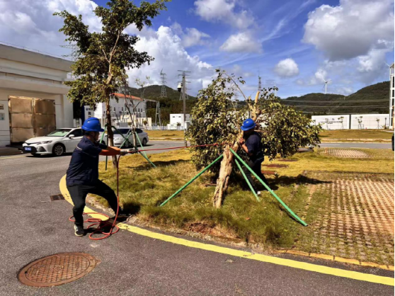 台风过境后,服务保障团队迅速开展“拉网式”复查。扶正倒伏树木4棵、清运断枝2车、修复脱落围墙栅栏2扇,并对配电房、水泵房、电梯井逐一除湿。截至9月26日10时,集控中心园区已恢复正常工作秩序。