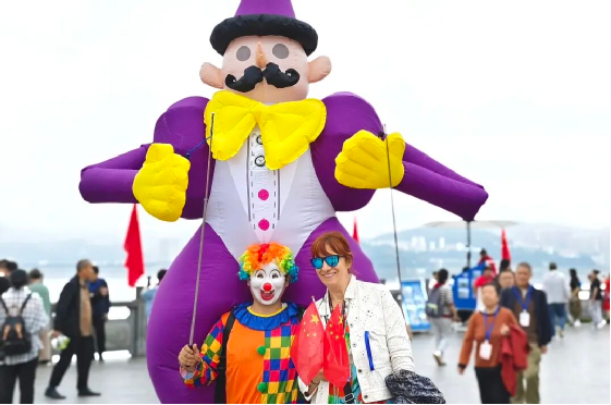 10月1日至5日,候车区域惊喜不断。小丑组团巡游,一挥手变出彩色气球,引得观众连连惊呼;滑稽互动、趣味送礼,孩子们根本挪不开眼。