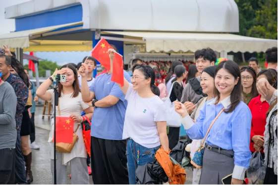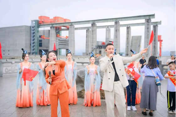 国庆当天,185平台秒变“红色合唱海洋”。精神矍铄的老人眼含热泪高声跟唱,稚嫩孩童举着小国旗清脆应和,青年人的歌声嘹亮而坚定,千百面红旗迎风涌动,经典旋律响彻云霄。以歌传情、以曲为舟,在三峡大坝的怀抱中,游客们完成了一场对祖国最深情的告白。